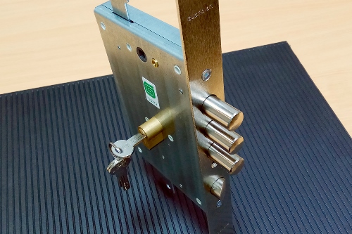 • Сувальдный. Внутри набор пластин (сувальд). Хорошо переносит силовые попытки, эффективен с бронепластиной и закалёнными ригелями. Ключ бородчатый, крупный.