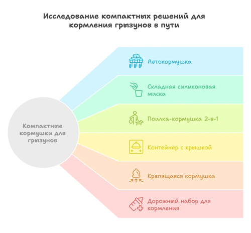 Компактные кормушки для путешествий – это незаменимый аксессуар для владельцев грызунов, которые часто берут своих питомцев в дорогу. Они обеспечивают удобное и безопасное кормление, предотвращают рассыпание корма и помогают поддерживать чистоту в клетке. Дорожные кормушки бывают разных типов – контейнерные, подвесные и автоматические, каждая из которых имеет свои преимущества. При выборе важно учитывать размер клетки, удобство крепления, прочность материалов и легкость очистки. Регулярный уход за кормушкой и правильная организация пространства в клетке помогут избежать проблем в пути. Такие аксессуары значительно облегчают поездки и создают комфортные условия для грызуна в любом месте.